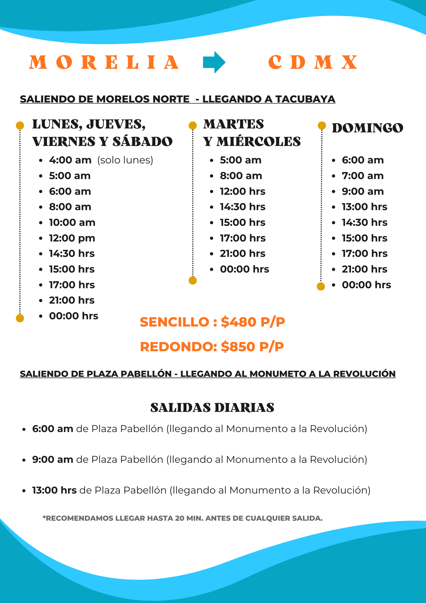 - 🐾 Mascotas: Por seguridad y comodidad de todos los pasajeros, en este servicio no se permite el transporte de mascotas. ¡Gracias por tu comprensión! 😊
